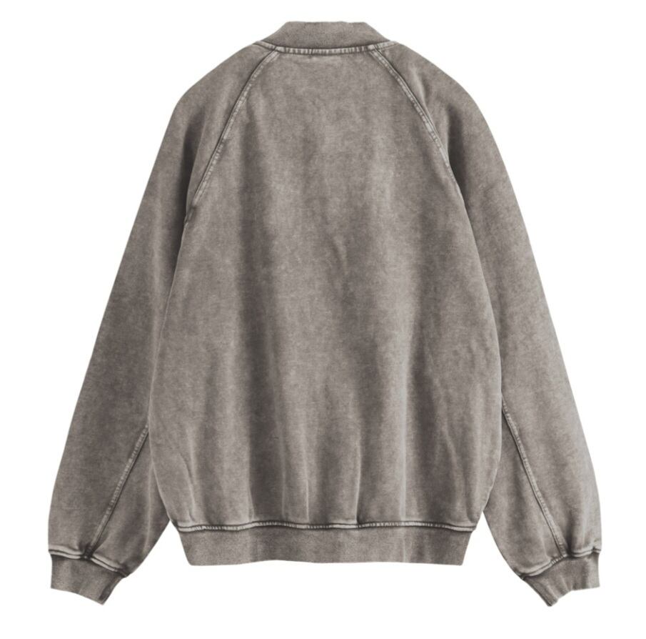 ウォッシュ加工仕立てのスウェットブルゾン。